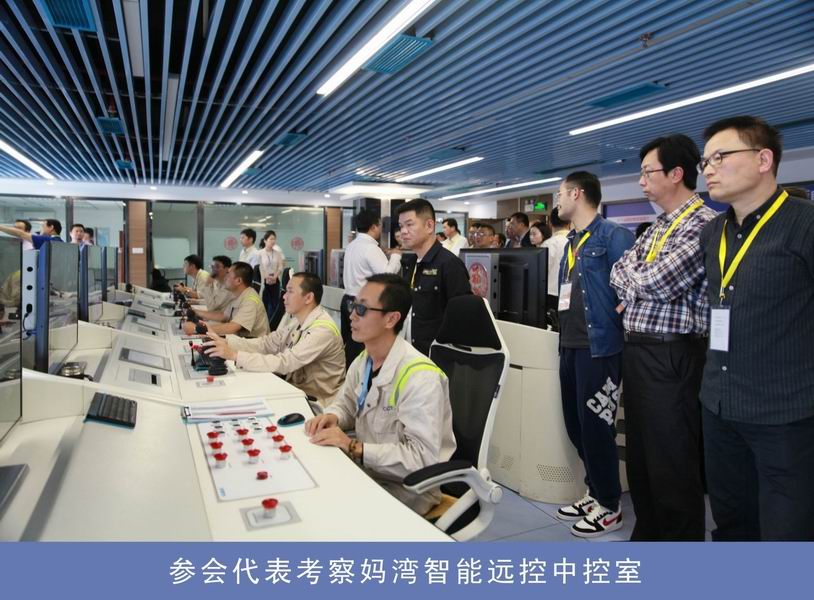 上午,參會代表歡聚一堂,聆聽演講,討論交流。下午,參會代表考察媽灣智能遠(yuǎn)程控制現(xiàn)場和赤灣門機(jī)自動定位防搖現(xiàn)場,近距離感受智能控制技術(shù)的應(yīng)用與發(fā)展。