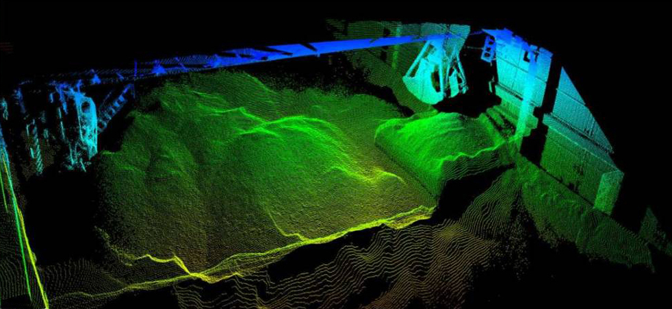 ? ?物料3D建模:3D點云數(shù)據(jù)采集,點云數(shù)據(jù)預(yù)處理,去除噪聲信息;建立整個庫區(qū)物料的準確模型。